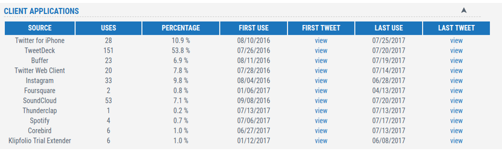 - Aplicaciones utilizadas por el usuario para publicar tweets.