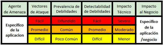 Figura 1. Variables para el cálculo del riesgo en aplicaciones (Fuente: OWASP)