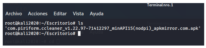 Y ahí la tenemos ya en nuestro escritorio, donde se ha creado el APK de nuestra aplicación maliciosa llamada “ premio.apk”.