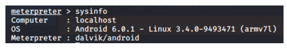 Ahora para ver que realmente estamos dentro del teléfono vamos a ejecutar el comando “sysinfo” para que nos muestre información del sistema.