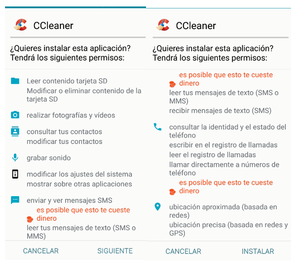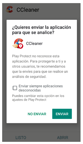 Seguidamente ya nos dejará instalar nuestra aplicación ( Ccleaner).