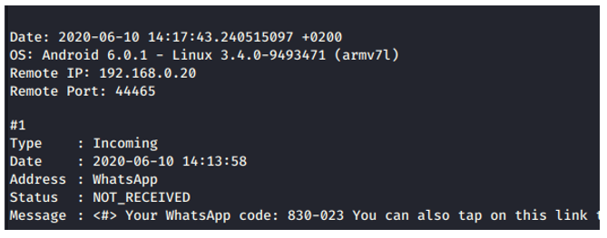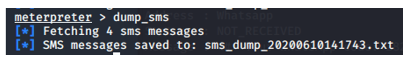 Ejecutamos en nuestra Kali el comando “dump_sms”: