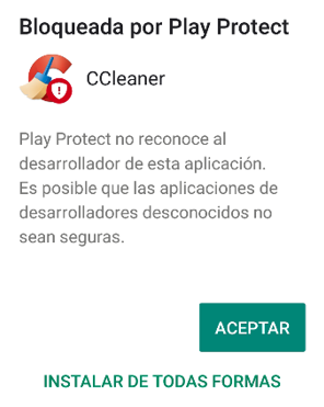 Pulsaremos en “siguiente” e “instalar”. Nos aparecerá un aviso de Google Play Protect, pero la podremos instalar al aceptarlo.