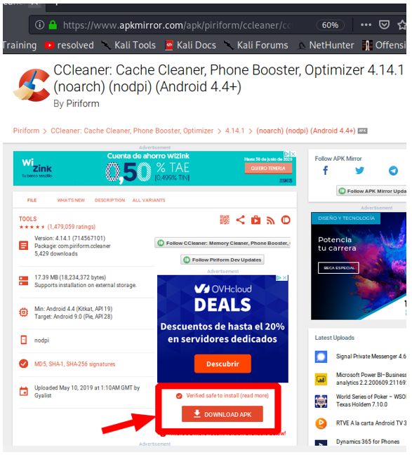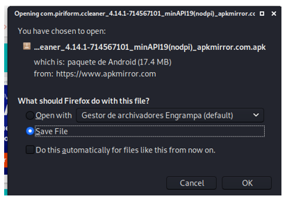 Para este ejemplo, descargamos la aplicación “ CCleaner” desde “ apkmirror.com”: