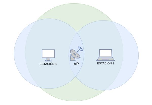 El problema del nodo oculto aparece cuando se empiezan a diseñar redes inalámbricas. Imaginemos que tenemos dos estaciones situadas dentro de un punto de acceso, estas estaciones o clientes tienen un alcance limitado, por lo que puede provocar que varios nodos dentro de una misma red no tengan visión entre ellos.