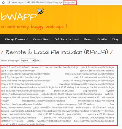 Para comprobar si existe un LFI vamos a facilitarle una ruta que apunte a un archivo de Linux ( etc/passwd) y si la vulnerabilidad existe y es explotable nos mostrará lo que hay en ese archivo. El archivo etc/passwd contiene información sobre todas las cuentas de los usuarios del sistema operativo.