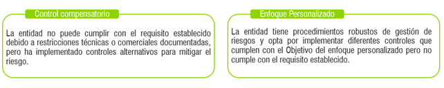 Es importante matizar que los controles compensatorios no son compatibles con el enfoque personalizado y que el enfoque personalizado requiere más esfuerzo que el enfoque definido y, como tal, esto deben tenerlo en cuenta aquellas entidades que deseen evaluarse a través de esa vía.