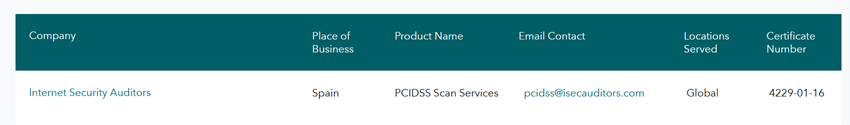 Puede consultar las empresas ASV certificadas a través del sitio web de PCI SSC: